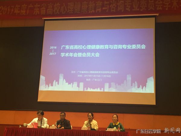 11月15日-16日,广东省高校心理健康教育与咨询专业委员会2016-2017年学术年会在鹤山召开,全省100余所高校的心理健康教育工作人员参会,我校派出心理健康教育中心主任林川和专职心理老师赵晓晗出席会议。