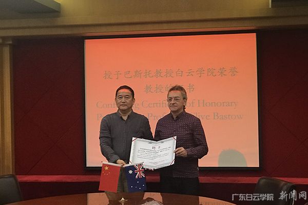 刘跃南副校长首先对巴斯托教授第三次来访我校表示热烈欢迎,对澳大利亚艾迪斯科文大学对我校重点学科建设给予的大力支持表示衷心感谢。克莱夫院长表示,ECU大学积极开展国际化工作,但像白云学院这样既保持了紧密的合作关系,又开展全面合作的大学,在中国实属罕见。两校合作成立“中澳设计研究院” (Sino-Australia Institute of Design),并在白云学院挂牌,推动在艺术设计领域的合作。