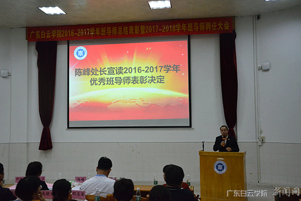 为贯彻落实全国高校思想政治工作会议精神,进一步强化全程育人、全方位育人目标,增强班导师对学生专业指导及应用能力培养的时效性,提高班导师工作的积极性。10月19日下午,广东白云学院在思齐楼312举行2016-2017学年班导师表彰大会及2017-2018学年班导师聘任大会。校党委副书记李纯英、学生处及各二级学院领导、全体班导师及助理和辅导员共300余人参加此次大会。大会由组织部副部长李建华主持。