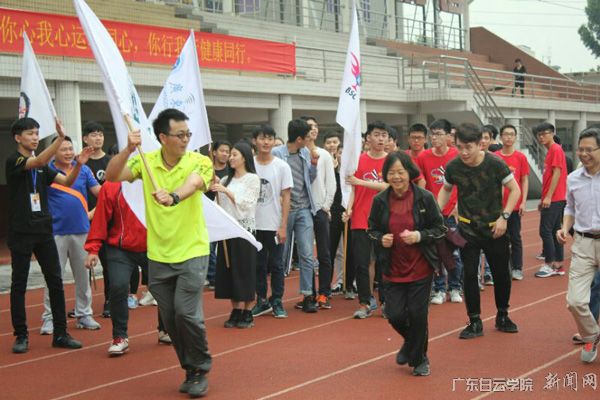 学校党委副书记李纯英宣布广东白云学院2017年大学生“三走”体育锻炼系列活动暨“白云杯”系列比赛启动,并带领全体师生一起走到跑道上,进行“相约白云”约跑活动。