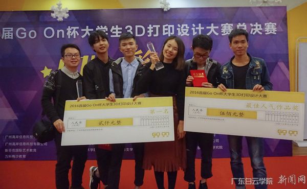 近日,由广州高岸信息科技有限公司举办的首届Go On杯大学生3D打印设计大赛成功落幕,我校艺术设计学院方建松老师、邓威老师指导的 “未来团队” (该团队是由2015产品设计2班詹忆懿、何育康、陈安琪、邱志明、潘连签、黄国非、陆志健组成)的作品“冷暖自知”荣获金奖以及最佳人气奖两份殊荣。