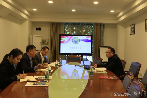 交流期间,双方就学生交流,教师培训、合作等方面进行了详谈,并初步达成合作意向。高力教授希望与广东白云学院建立长期的合作关系,他希望双方抓住我国推行的“一路一带”政策机遇,推动双方学术交流和研究合作。沈根生副校长表示愿意与泰国商会大学国际学院进行深入合作,重点介绍了我校应用技术大学建设以及国际交流合作方面的具体情况。艺术设计学院陈华钢院长则详细介绍了艺术设计学院专业,办学特色,并表示,希望与泰国商会大学在学生互换、教师交流、科研合作等方面进行合作交流;希望能够借鉴泰国商会大学的优质师资与教学资源,为我院学生、教师提供更好的发展、深造平台。