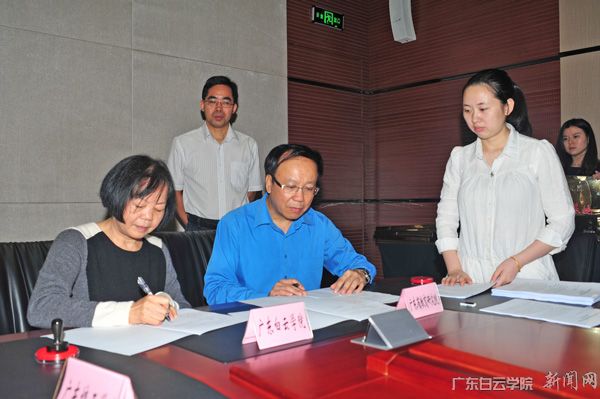我校党委书记李纯英(左)与广东省教育研究院副院长朱仲庆(右)签署民办教育研究基地共建协议