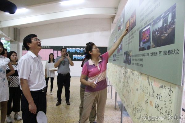 10月20日,广东白云学院财经学院“文明修身工程”阶段性成果展在至善楼下顺利进行。校党委书记刘剑锋、党委副书记李纯英、学生处处长陈峰等领导在财经学院院长沈颂东及党总支书记陈理玫的陪同下,到展览现场视察、指导。