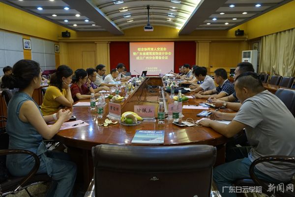 9月11日下午,校企协同育人交流会暨广东省建筑装饰设计协会成立广州分会筹备会议在广东白云学院隆重举行,广东省建筑装饰行业协会、广东省建筑装饰设计协会会长兰芳,艺术设计学院院长、广东省建筑装饰设计协会副会长陈华钢教授出席了会议并作讲话,同时还有多家企业代表参会,会议由艺术设计学院方建松院长助理主持。