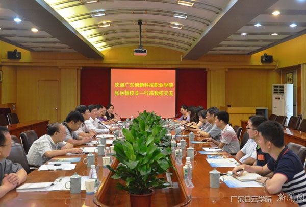 张岳恒校长听取了介绍后,对我校的办学定位和办学思路给予了高度赞扬,指出我校办学定位准确,办学思路清晰,而这个问题恰恰是当下较多学校发展改革中的难点,白云学院理清了办学思路,所以才能快速的发展,成为广东省民办高校的一面旗帜。随后,张校长介绍了广东创新科技职业学院的发展历程,并就民办高校发展的相关问题与黄大乾校长、刘剑锋书记等进行了深入地探讨和交流。
