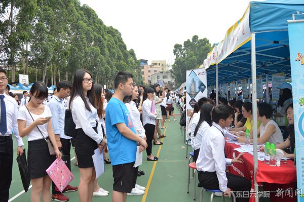 5月19日,由广东省教育厅主办、广东白云学院承办的“2016年广东省高校毕业生供需见面会——应用型人才专场”在广东白云学院西校区运动场举行。 本场供需见面会共有247家企业进场招聘,包括广东美的厨房电器制造有限公司、广州百事可乐饮料有限公司、中国联通广州分公司、中国移动南方基地、珠海可口可乐饮料有限公司、罗浮宫家居集团、香港皇朝家私集团有限公司、广州本田汽车第一销售有限公司、广州长隆集团有限公司长隆酒店分公司、广东中山建筑设计院股份有限公司、中国物资储运广州公司等知名企业为毕业生提供了5000多个工作岗位。