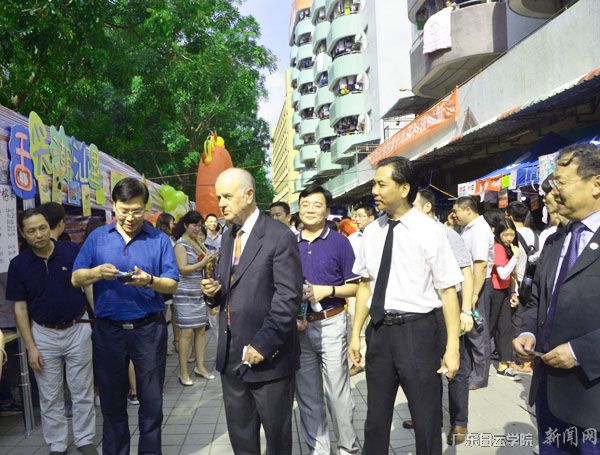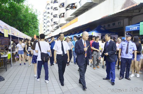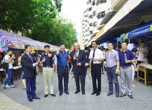 5月23日,广东白云学院第十九届科技创新节之创客集市活动在文化一条街拉开序幕,活动由管理学院(社会与公共管理学院)承办。广东白云学院董事长谢可滔、名誉董事和名誉教授凯瑞.考克斯教授(澳大利亚埃迪斯.科文大学和联邦大学前校长)、校长黄大乾、党委书记刘剑锋、党委副书记李纯英、副校长刘跃南、副校长沈根生出席了开幕式,并在开幕式后莅临集市活动现场指导工作。