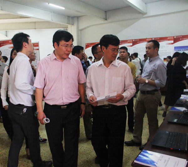 黄大乾校长和刘剑锋书记观摩学生科技创新作品