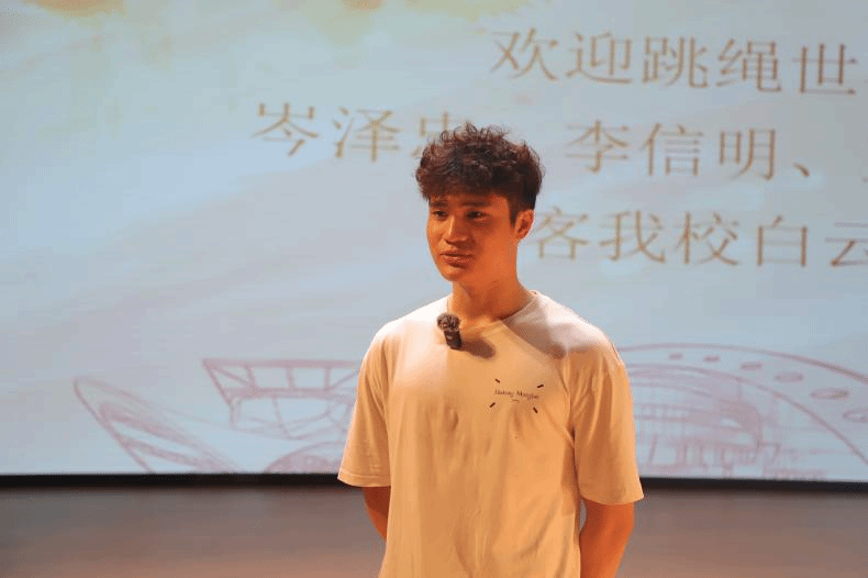 “我第一次接触跳绳,那是一根非常普普通通的绳子,却像一把神奇的钥匙为他打开了新世界的大门。”李信明在现场讲起他与跳绳的故事。小小的他挥动着绳子,看着绳子脚下快速穿梭,心里满是欣喜与欢喜,从那一刻起,他便深深地感受到跳绳所带来的魅力。“每天无数次的跳跃,让他让我的双腿疼痛不已,双手也被绳子磨出了水泡。”他坦言,通往世界冠军的道路绝非坦途,是由无数个枯燥的清晨和深夜铺就的。2017年香港跳绳世界锦标赛上,他凭借着完美的发挥,拿下了多项冠军。