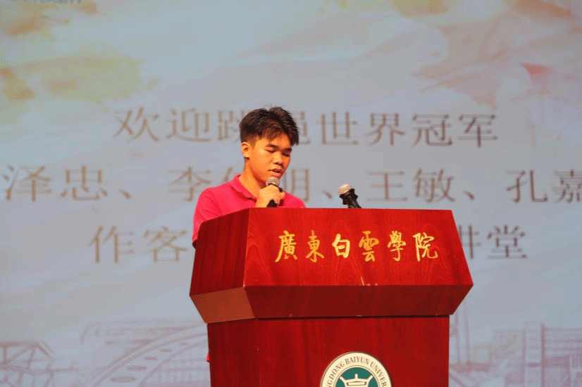 活动伊始,冠军们微笑着走向台前与现场的同学们交流,与赛场上那个气场全开的王者不同,台上的他们显得谦和而真诚。