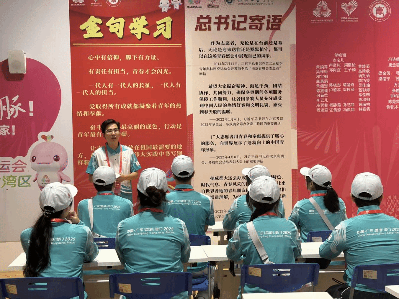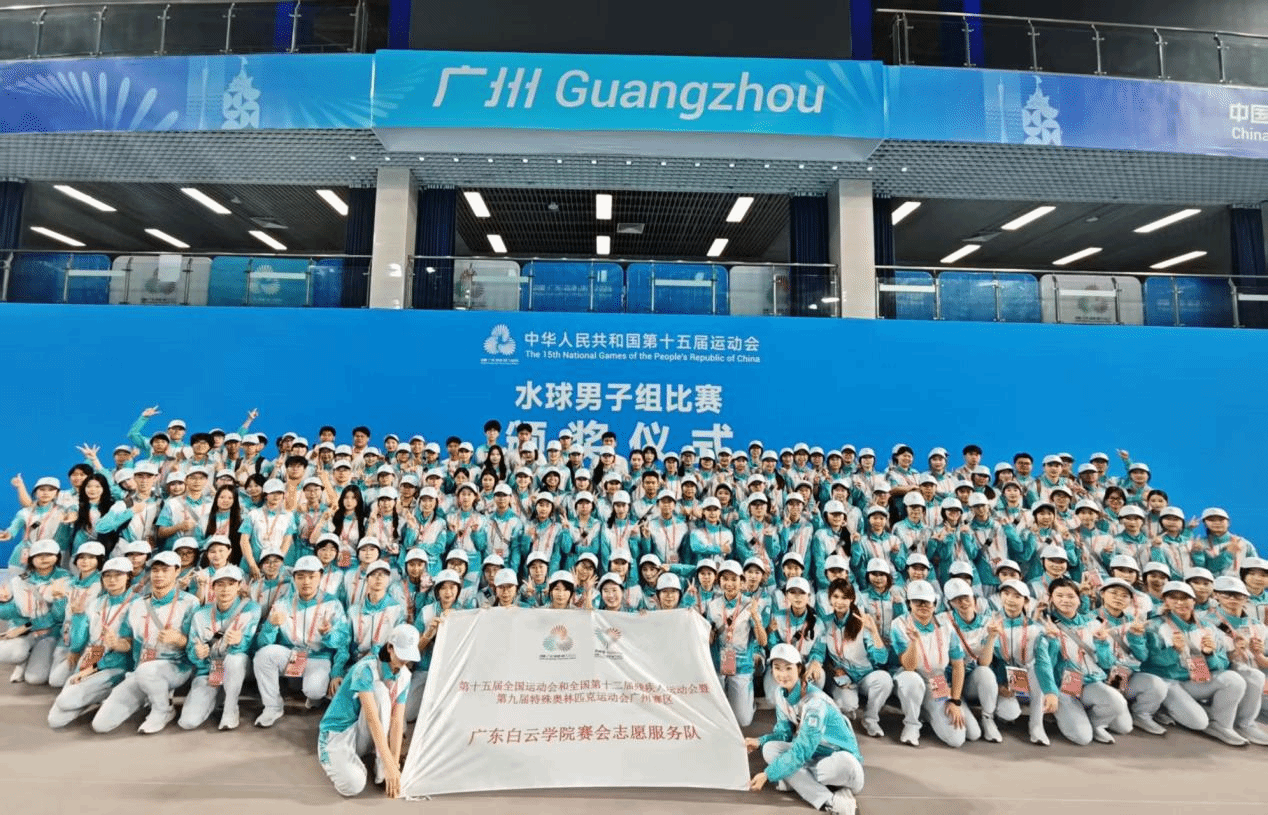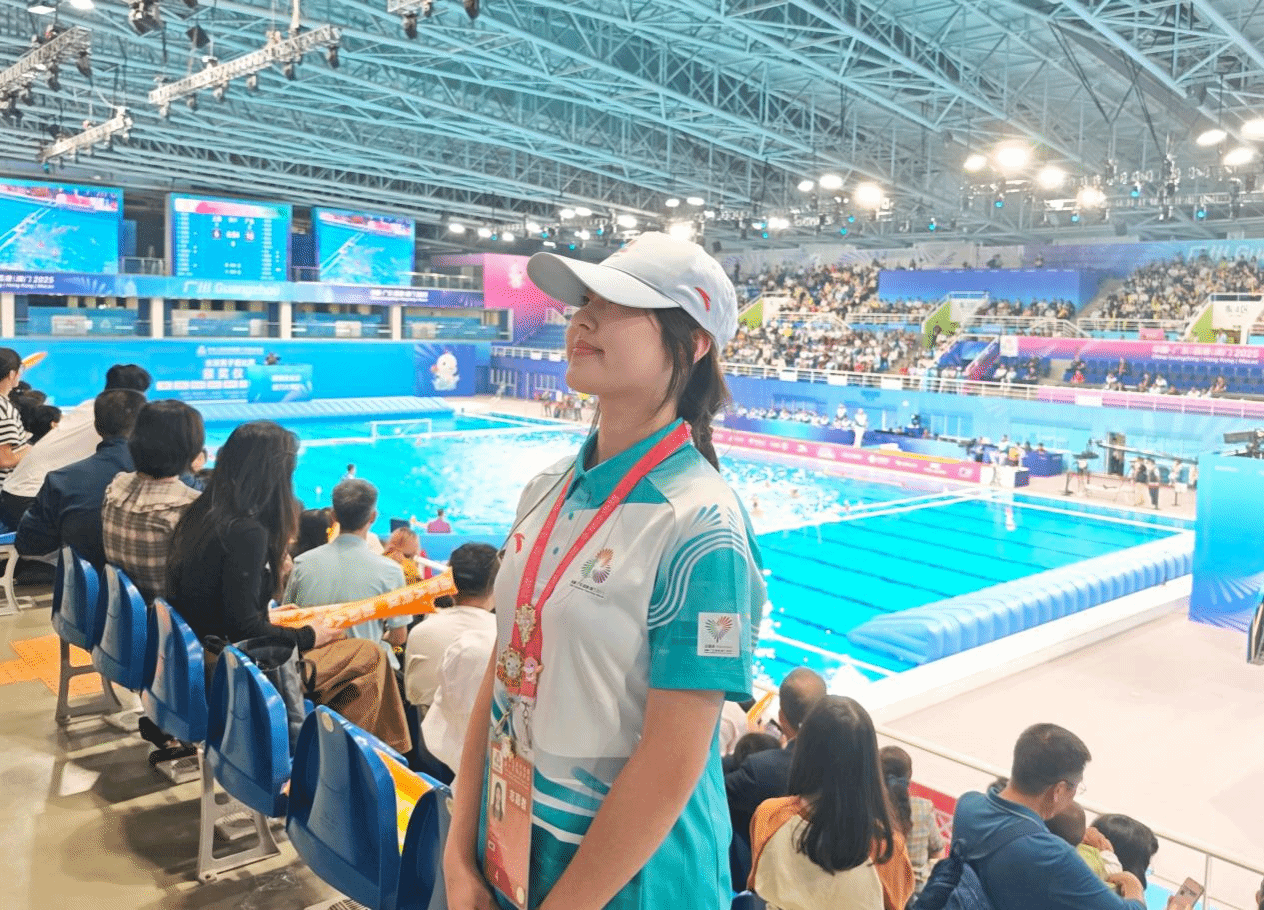 在本次赛事中,广东白云学院180名“小海豚”志愿者,以专业高效的服务、热情饱满的姿态,为男女水球赛事的顺利推进保驾护航,成为赛场内外一道亮丽的青春风景线。