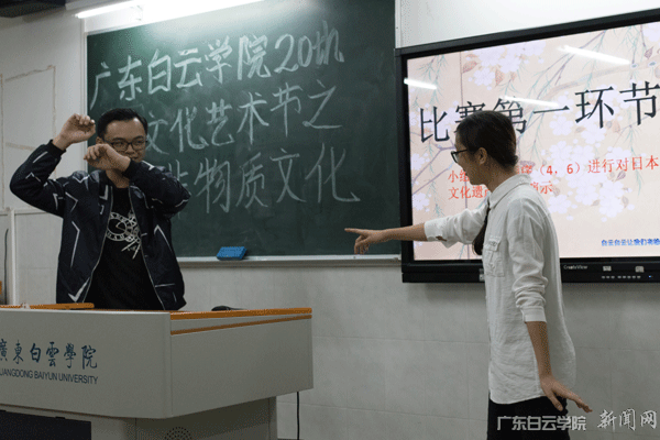 为向同学们全方位展示日本本土非物质文化遗产,让全校的师生从视觉和听觉上感受到日本异国风情,外国语学院于12月12日在信达楼805室顺利举办广东白云学院第二十届校园艺术节之2017年外语文化节系列活动---日本非物质文化遗产艺术展决赛。外国语学院团总支书记梅俊强老师、日语系陈健美老师、外教恒内孝弘老师以及部分日语爱好者人参加了本次活动。