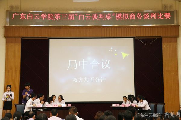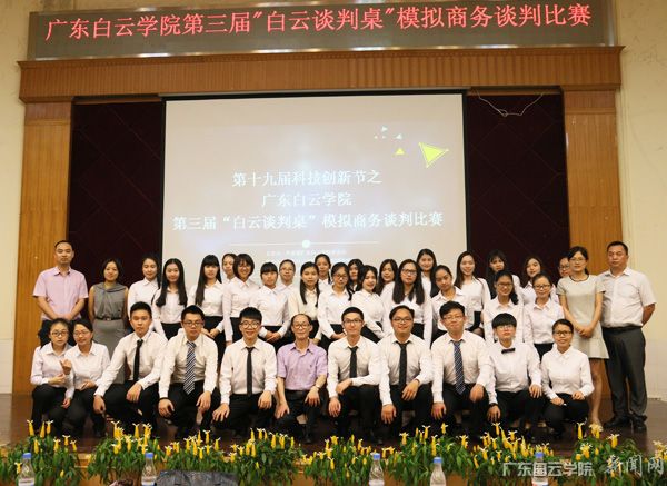 5月9日晚,广东白云学院第十九届科技创新节之第三届“白云谈判桌”模拟商务谈判比赛决赛在儒学堂举行。财经学院吴金蓉老师、毛政才老师、辅导员王晓平、辅导员刘飞兰等观摩了比赛。