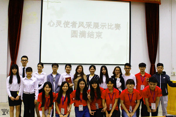 为了进一步提升学生的心理素质,增强学生的心理防御能力,广东白云学院管理(社会与公共管理)学院5.25“我爱我”心理健康系列普及活动之—“心灵使者”风采展示大赛决赛于4月18日晚在思齐楼312教室举行。管理(社会与公共管理)学院党总支宣传委员王曾惠、团总支书记赵浡彤、各班健心委员及200名学生观看了比赛。