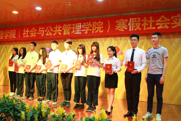 管理(社会与公共管理)学院2015-2016学年度“知行合一、学以致用”寒假社会实践活动表彰大会于4月19日晚在小礼堂举行,学院副院长、党总支书记岳增玲出席会议,学院部分辅导员、团学主要干部、近300名学生观众参加了活动。