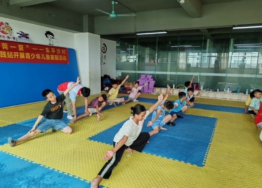 青创筑梦实践团突击队协助指导武术课程动作