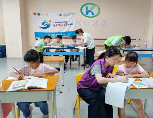 在综合美术活动中,突击队成员主动与孩子们交流,根据他们的构思辅助完成作品,并组织互动小游戏、讲有趣小故事活跃课堂气氛。作业指导班则由突击队承担监督和指导责任,督促孩子们完成暑期作业,针对数学题、古诗词背诵、英文单词学习等进行细致辅导,帮助孩子们巩固所学知识。(图文/电气与信息工程学院杨雅麟、付天同 责任编辑曾进、赵利兴)