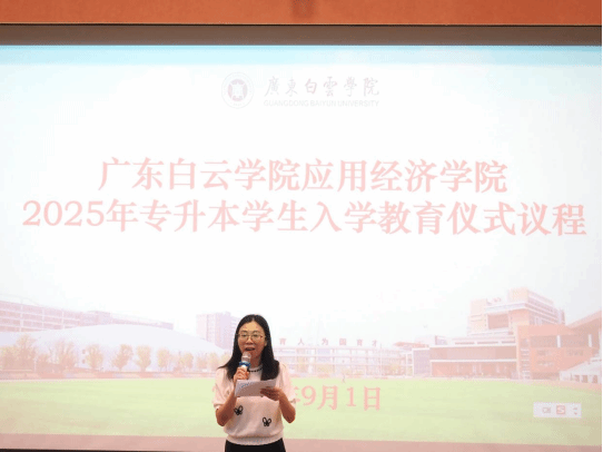 金秋时节,硕果盈枝,广东白云学院应用经济学院8月31日迎来第一批2025级专升本新生,为帮助学生了解白云学院、了解应用经济学院,明确学习目标。9月1日上午应用经济学院在明德楼207隆重召开2025 级专升本新生入学教育大会。应用经济学院院长王先庆,学院党委书记张泽彬,副院长陈喜强、康艺之、董思雁,系主任正副主任以及各年级辅导员及2025级专升本全体新生出席了本次大会。活动由副院长董思雁主持。