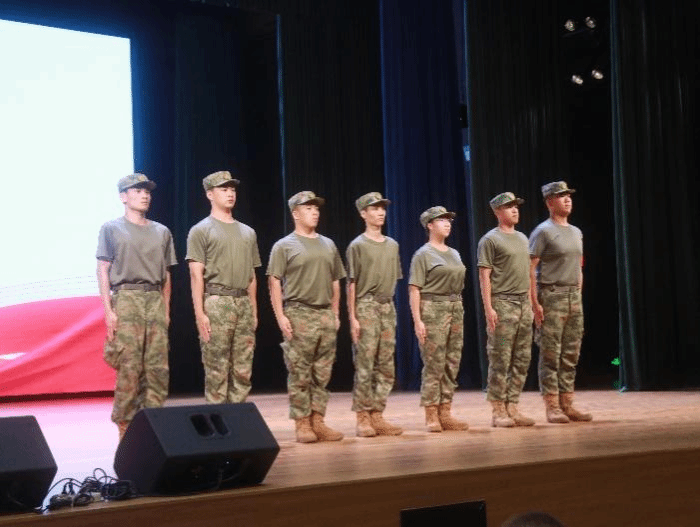 首先,全场人员整齐肃立,《义勇军进行曲》的激昂旋律响彻大厅,新生们身着统一服装,目光坚定地望向国旗方向,嘹亮的歌声中满是青春的朝气与对责任的敬畏,现场庄重肃穆的氛围感染着每一个人,也让新生们深刻体会到军训作为爱国主义教育重要载体的特殊意义。国歌毕,主持人莫嘉健老师走上台前,逐一介绍到场的院领导与辅导员团队。随后,大会特意设置教官欢迎环节,现场响起经久不息的掌声,新生们以最热烈的方式,向即将带领大家开展训练的教官团队表示诚挚欢迎,教官们挺拔的站姿、昂扬的精神风貌,也让新生们对接下来的军训生活充满期待。
