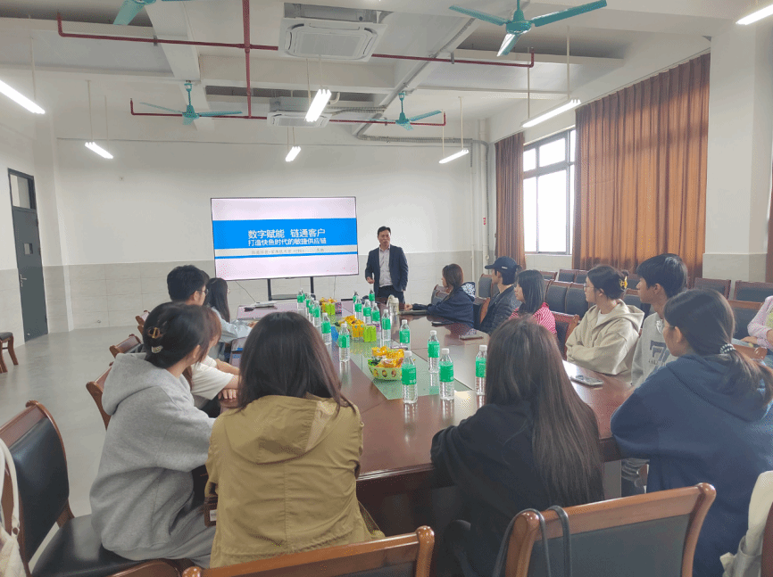 讲座结束后,活动进入了气氛热烈的圆桌座谈环节。吴鹏总监与学院的学生代表围坐一堂,进行了面对面的深入交流。同学们围绕“数字化转型中的挑战”“AI技术在物流场景的具体应用”“供应链人才所需的核心能力”等话题踊跃提问。吴鹏总监结合自身职业发展经历与企业真实案例,给予了细致而中肯的解答,他鼓励同学们在校期间不仅要夯实理论基础,更要积极关注行业动态,培养解决复杂问题的系统性思维和实践能力。