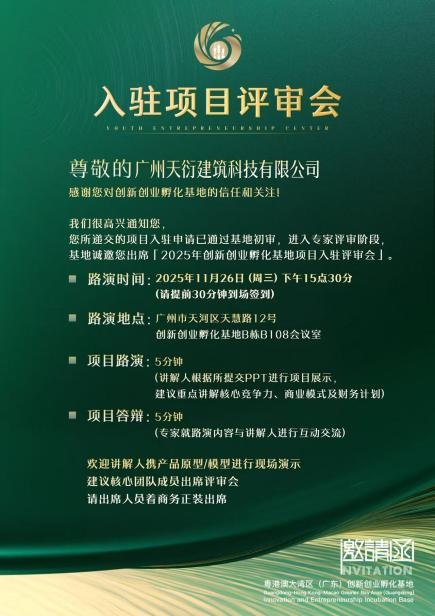 此次路演答辩不仅是公司争取入驻大湾区顶级孵化平台的重要契机,更是一次对接优质资源、拓宽发展视野的宝贵经历。团队成员表示,将积极吸纳评委建议,进一步完善发展规划,若成功入驻,将充分利用孵化基地的政策、资源与平台优势,加速公司成长步伐。未来,公司也将继续依托广东白云学院的培育基础,深化产学研合作,朝着建筑科技领域创新标杆的目标稳步迈进,为行业发展与区域建设贡献力量。(图文/创新创业团队广州天衍建筑科技有限公司童菲 责任编辑曾进)