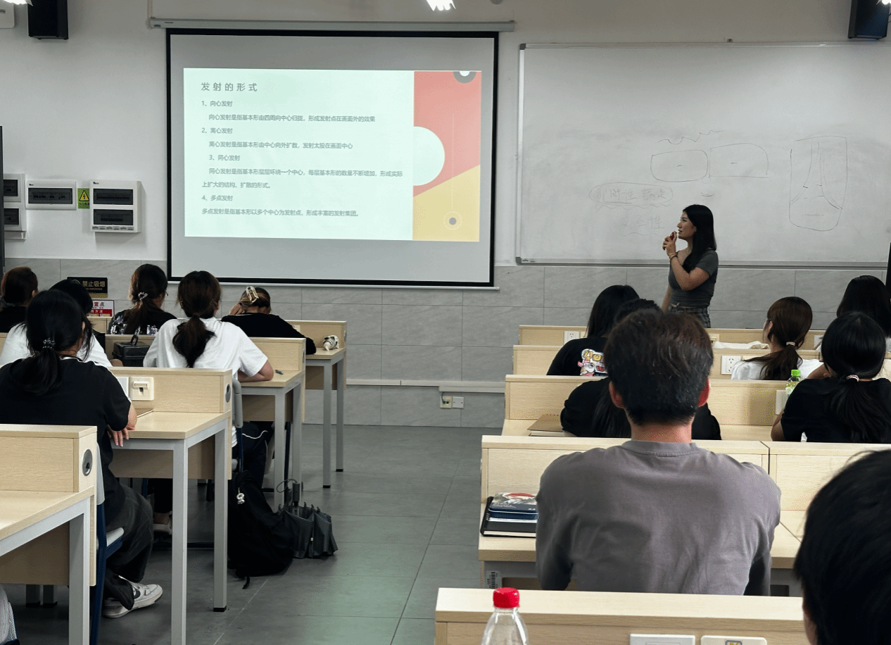本次课程聚焦于《构成》中的核心模块——色彩构成。叶老师以其丰富的教学经验和深厚的色彩学理论基础,从色彩的物理属性、心理感知到文化象征,层层深入地剖析了色彩的魅力。她并未停留在理论阐述,而是通过大量鲜活的设计案例与经典艺术作品,直观展示了色彩原理在实际创作中的灵活运用。课堂上,叶老师还设置了互动环节,针对同学们在色彩练习中遇到的困惑进行了耐心细致的指导,其生动形象的讲解赢得了同学们的阵阵掌声。