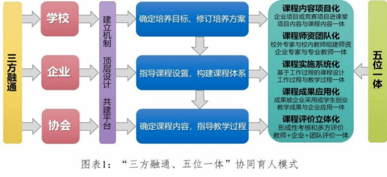 特色一:打造了以“三方融通、五位一体” 践行并创新“3+1”校企协同育人的人才培养模式(见图表1)。